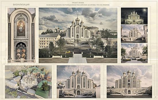 В этих условиях и возникла идея возвести новый собор-памятник в честь Новомучеников и Исповедников Российских на крови, что на Лубянке. Идея, всемерно поддержанная Святейшим патриархом Московским и всея Руси Кириллом и сегодня приобретшая более определенные очертания в виде победившего в конкурсе эскизного проекта, подготовленного известным российским художником Юрием Купером и архитектором Дмитрием Смирновым.