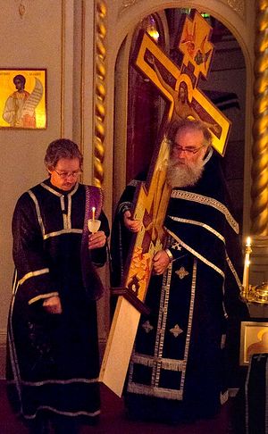 Это же наш o. Андрей, настоятель собора Божией Матери в Миннеаполисе, на фотографии -- чудный, чудный батюшка! А рядом с ним диакон Давид Костик; его сын Нафанаил перед постом заболел лимфомой; если кому попадутся эти строчки на глаза, воздохните молитвенно, пожалуйста.