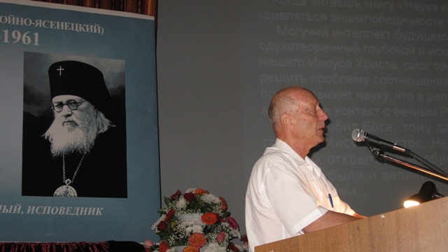 В.А.Лисичкин выступает с докладом на V международной научно-практической конференции «Духовное и врачебное наследие Святителя Луки (Войно-Ясенецкого)» - Владимир Александрович, расскажите о Ваших книгах, посвященных Святителю Луке.