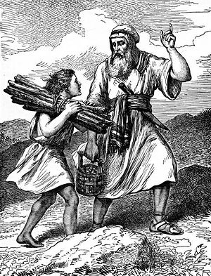 Он молча взял вязанку хвороста, привязал ее на спину мула, взял отрока за руку и пошел на гору, где всегда приносил жертву.