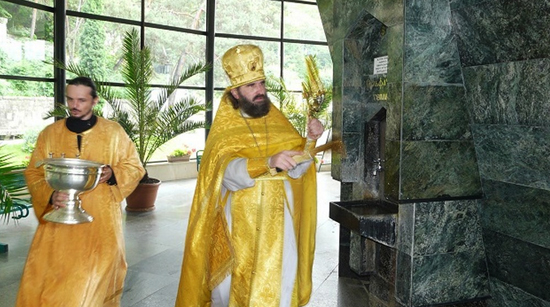 От Свято-Никольского собора торжественное шествие с хоругвями и иконами через Курортный парк с пением праздничных песнопений направилось к Нарзанной галерее, где был совершен молебен с водоосвящением.