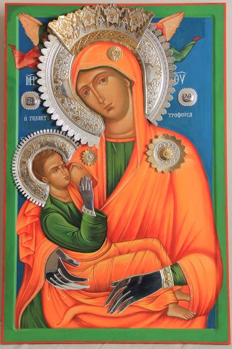 Богородица, изображенная кормящей грудью Младенца Иисуса -