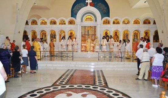Светом Литургијом началствовао је Архиепископ Анастасије, а саслуживали су му Митрополит Корче Јован, Митрополит Ђирокастре Димитрије, Епископ Аполоније Николај, Епископ Крује Антоније, Епископ Амантије Натанаил и Епископ Билиса Асти, као и шеснаест свештеника и два ђакона.