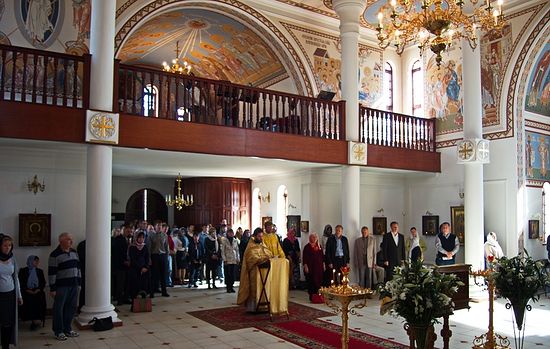 После окончания воскресной Божественной литургии настоятель храма иерей Даниил Луговой совершил благодарственный молебен «за вся благодеяния, бывшая на Руси от лет древних и до ныне».