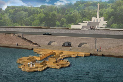 Проект подготовило архитектурное бюро Проценко (Киев). «Внутренний контур монумента имеет вид казацкого креста, в котором можно будет купаться на Крещение, изготовлен из дерева и металлического каркаса, а основой станут железобетонные сваи. По ночам крест будет светиться», — говорится в описании проекта.