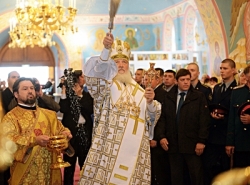 Губернатор Кемеровской области А.Г. Тулеев поблагодарил Его Святейшество за посещение Кузбасского края в День шахтера и освящение самого большого шахтерского храма России.