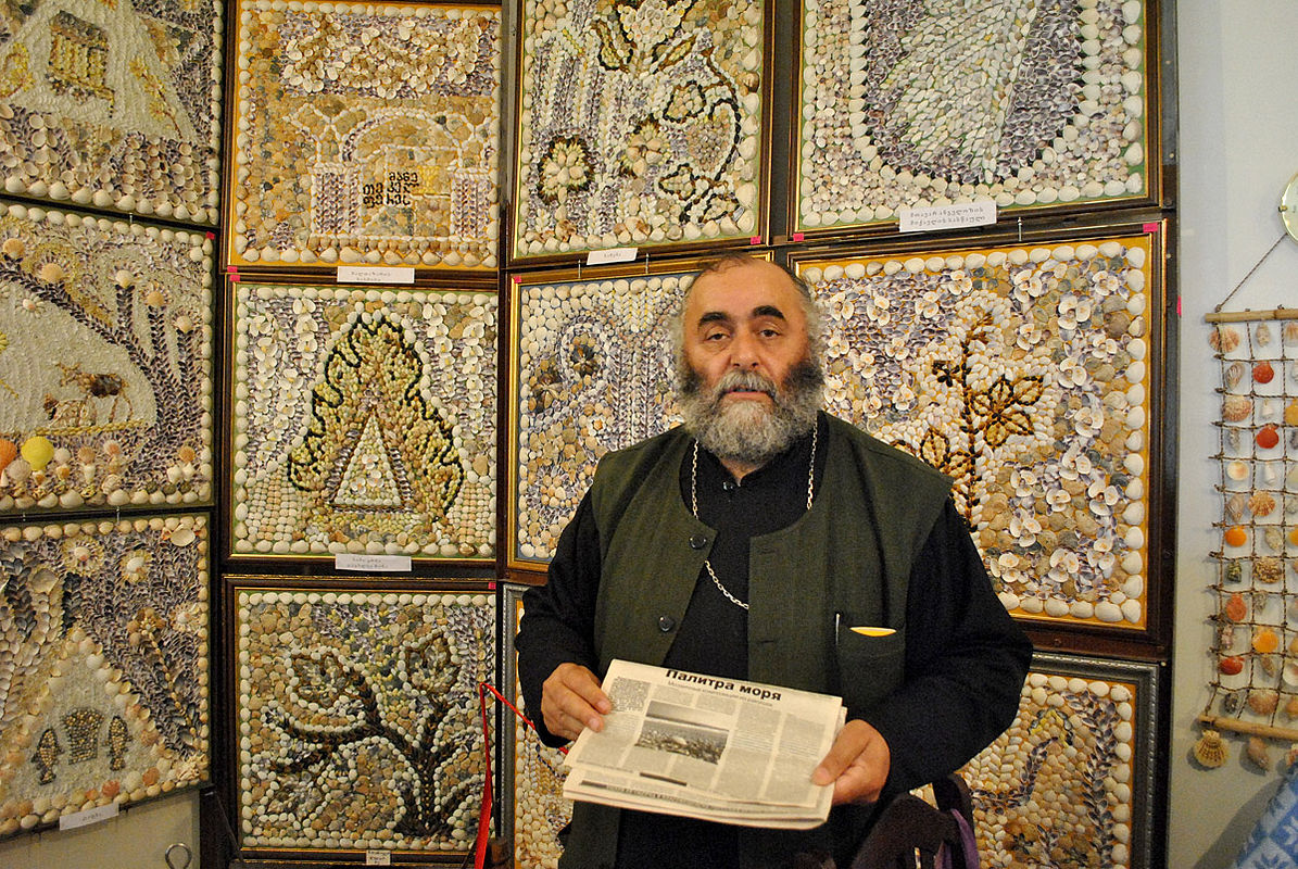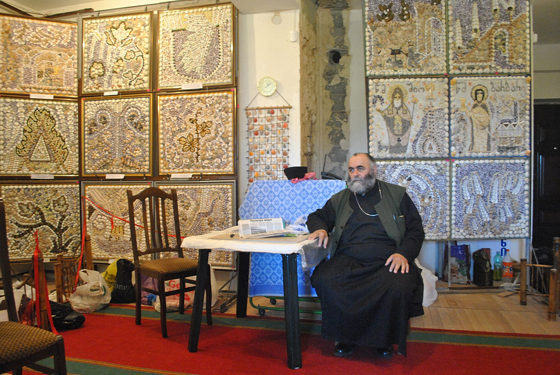 Его звали отец Димитрий – Деметре на грузинский лад. Выяснилось, что батюшка увлечен уникальным делом – он выкладывает из ракушек картины. Отец Димитрий достал мобильный телефон и стал показывать мне свои удивительные панно, по ходу дела рассказывая о своем хобби. Заниматься этим он стал лет пять-шесть назад, неожиданно для себя. Отдыхая в Уреки (у его семьи там дача), он обратил внимание на красивейшие разноцветные ракушки, в изобилии разбросанные на песке.