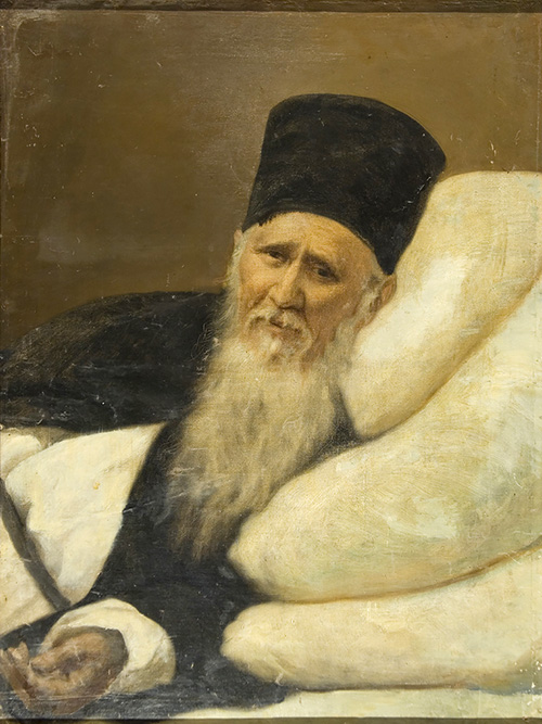 Всенародно любимым стал и другой портрет старца, на котором батюшка был изображен лежащим на подушечках. Как отмечает потомок Д.М. Болотова и исследователь его творчества А.Л. Толмачев, «в этом портрете зафиксирован итог монашеской жизни, переход к жизни вечной, спокойная готовность потрудившегося в молитве к встрече со своим Спасителем». Именно этот портрет почитатели старца просили художника повторить еще и еще раз. Многие копии его дошли и до наших дней. Некоторые даже обращались с просьбами к отцу Даниилу изобразить себя коленопреклоненными перед старцем. Сохранился один такой портрет 1899 года, на котором изображен старец, исповедующий Ольгу Карловну Гончарову.