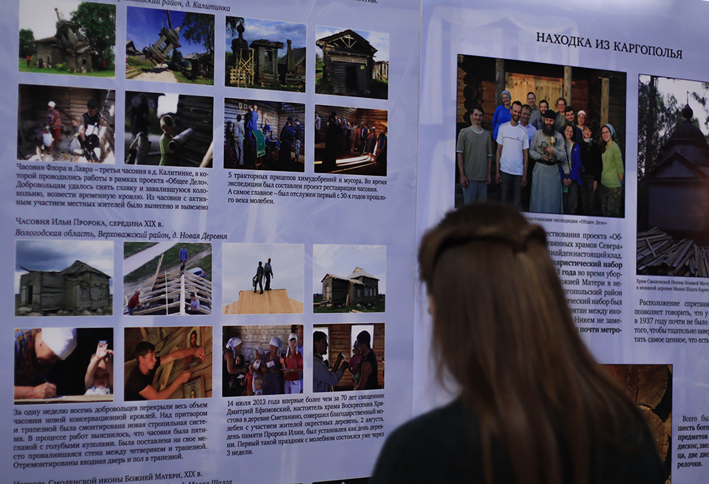 На днях в Москве в одном из павильонов ВВЦ прошла встреча участников экспедиций 2013 года проекта «Общее дело. Возрождение деревянных храмов Севера». Встреча началась с освящения знамени проекта митрополитом Архангельским и Холмогорским Даниилом.