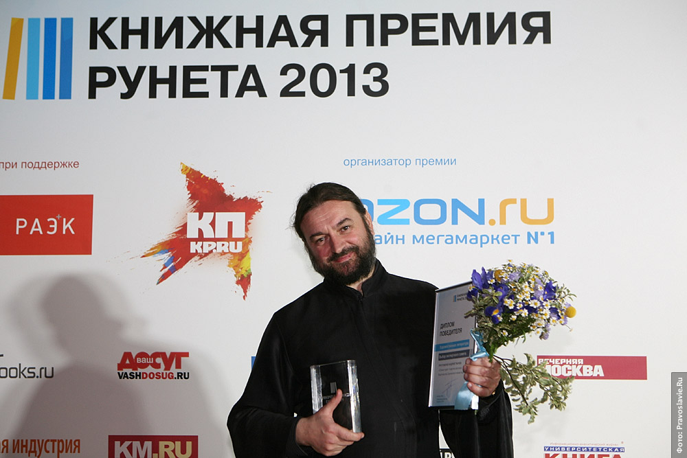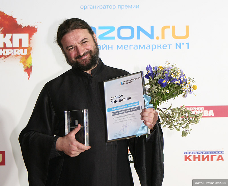 Слова отца Андрея Ткачева, автора книги «“Страна чудес” и другие рассказы», – лучший эпиграф, иллюстрирующий обстановку, в которой проходила церемония награждения независимой «Книжной премии Рунета 2013»: вокруг шумно, а внутри мир и спокойствие. Те же мир и спокойствие, что невидимо пронизывают писательские труды протоиерея Андрея Ткачева – настоятеля храма преподобного Агапита Печерского в Киеве, известного миссионера и проповедника, который специально приехал в Москву на торжественные мероприятия. Отец Андрей стал лауреатом в номинации «Выбор экспертов – художественная литература» (по неофициальной информации книга до последнего момента лидировала и в голосовании пользователей Рунета).