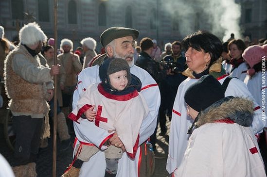 Главными участниками массового шествия, в котором принимают участие тысячи человек, являются "несущие благую весть" - в основном это дети, одетые в белые одежды с изображенными на ней красными крестами. Они песнопениями оповещают о рождении Христа, пишет NewsGeorgia