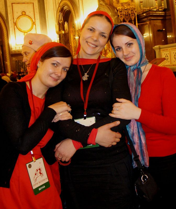 Встаю на место. «С праздником вас, проходите, пожалуйста! С Пра…», — осекаюсь — знакомое лицо, да, конечно же, это Мария — руководитель отдела информации Московской Патриархии. Наверное, проводила очередную съемочную группу и бежит в Штаб. Как все же приятно встретить знакомца в этом нескончаемом людском потоке!