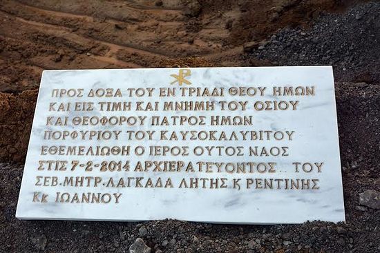 Митрополит Лангады, Литы и Рендини Иоанн освятил закладной камень первого храма в честь недавно канонизированного Константинопольской Церковью афонского старца Порфирия Кавсокаливита (1906-1991).