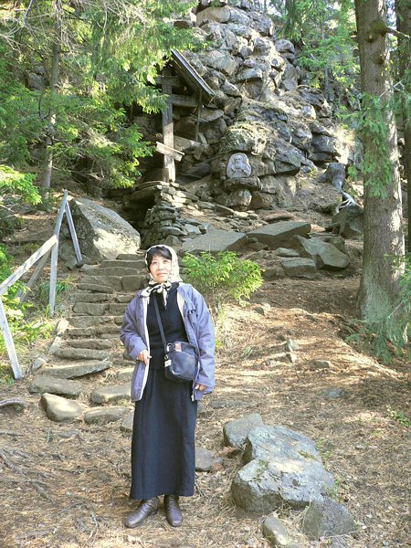 Я попросила о встрече с регентом хора Валаамского монастыря иеромонахом Давидом. Прежде всего он спросил: «Используются ли собственно японские мелодии в японских православных церквях?» Я была сильно смущена вопросом и ответила: «В Японии удалось сохранить преимущественно российские распевы XIX века, привнесенные к нам святителем Николаем Японским». На это отец Давид сказал: «Молитесь Христу так, как свойственно вашей культуре. Так считали и святитель Николай, и святитель Иннокентий, и сибирские миссионеры. Молитесь Богу на своем языке в рамках своей культуры. Христос Един». Отцу Давиду пришлись по сердцу слова о том, что атмосфера Валаама схожа с японской с точки зрения музыки и внутреннего устройства храма. На прощание он подарил мне свои диски и ноты.
