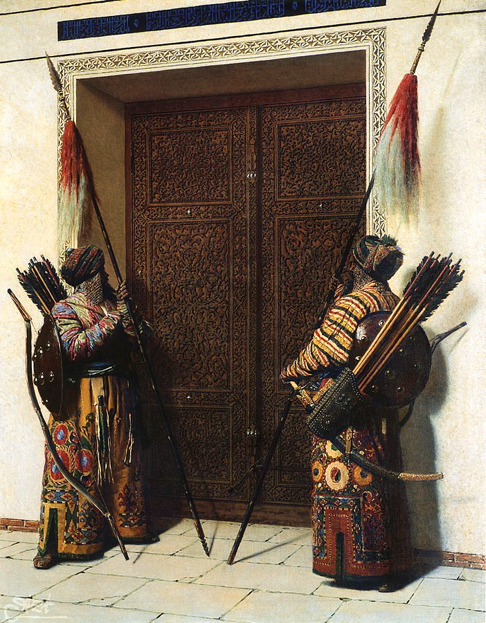 Помню, что выставка Верещагина, которого автор этих строк по глупости молодых лет считал «простым» баталистом, году в 1989-м, в Москве, на Крымском валу, буквально взорвала русскую общественность. Тогда Третьяковка, пожалуй, впервые в истории, собрала все работы мастера из фондов отечественных музеев. Вот где открылось буйство красок, цвета! Колориты восточных тюрбанов и халатов, этот «Тадж-Махал», гигантские «Врата Тамерлана» («Двери Тимура»), у которых простой смертный должен был чувствовать себя ничтожеством перед величием тирана — вызывали буквально стон у позднесоветской публики! «Врата Тамерлана» — картина великой красоты и силы; на ней изображен вход во дворец среднеазиатского владыки. Внимание воинов и зрителей приковано к вратам, украшенным сложным орнаментом: из ворот в любой момент может выйти сам правитель. Что принесет очередное его появление пред народом? Чего сегодня захочет он сам, что нашептали ему советники и указчики, чего хочет его любимая жена или его левая нога? Какие прихоти пригрезятся ему? Будет ли он принимать мессианскую позу, выйдет ли просто одетым, или в дорогой вышитой рубахе? Будет ли он молчалив или, как всегда, зануден и косноязычен? Каждое цветовое пятнышко словно отражает часть имперского тамерлановского космоса, частицу построенного им и подчиненного ему мира, со своими красотой и ужасом.