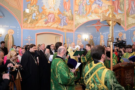 По окончании богослужения Святейший Патриарх Кирилл обратился к собравшимся в храме с кратким словом: