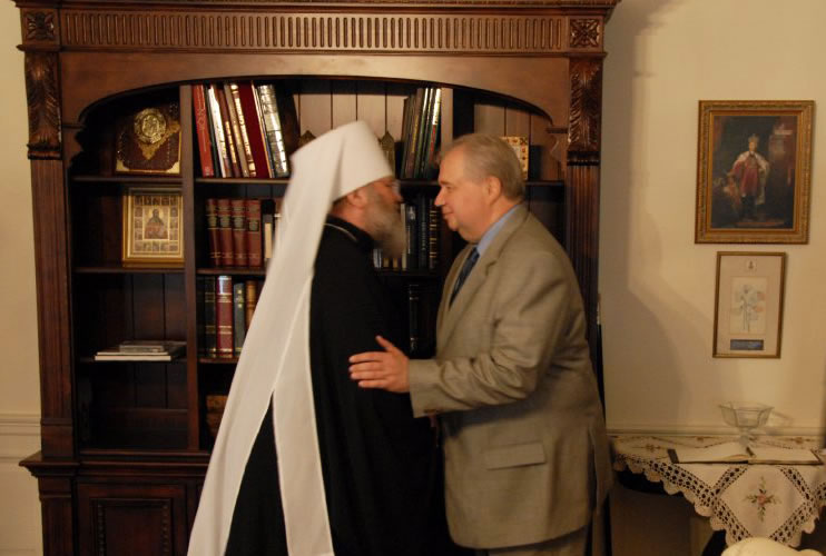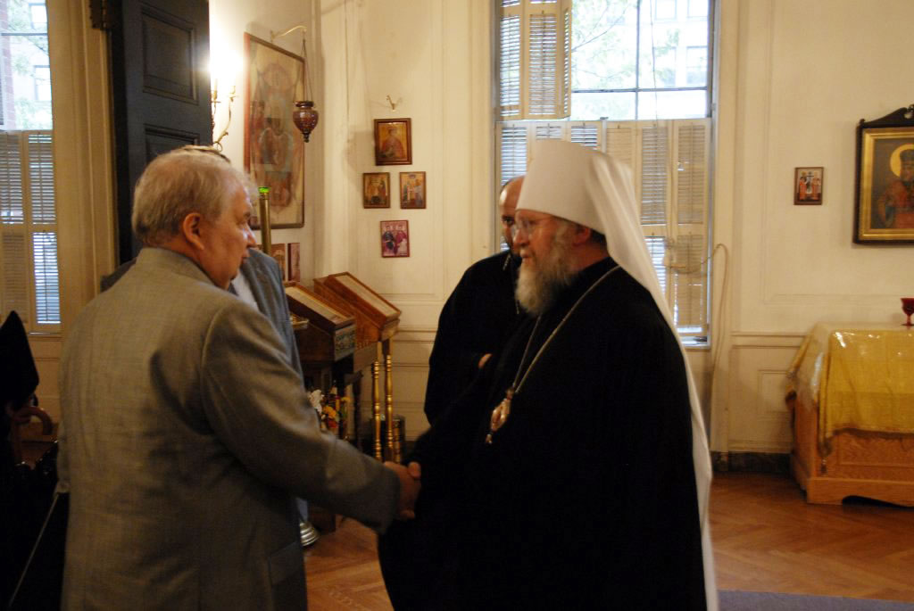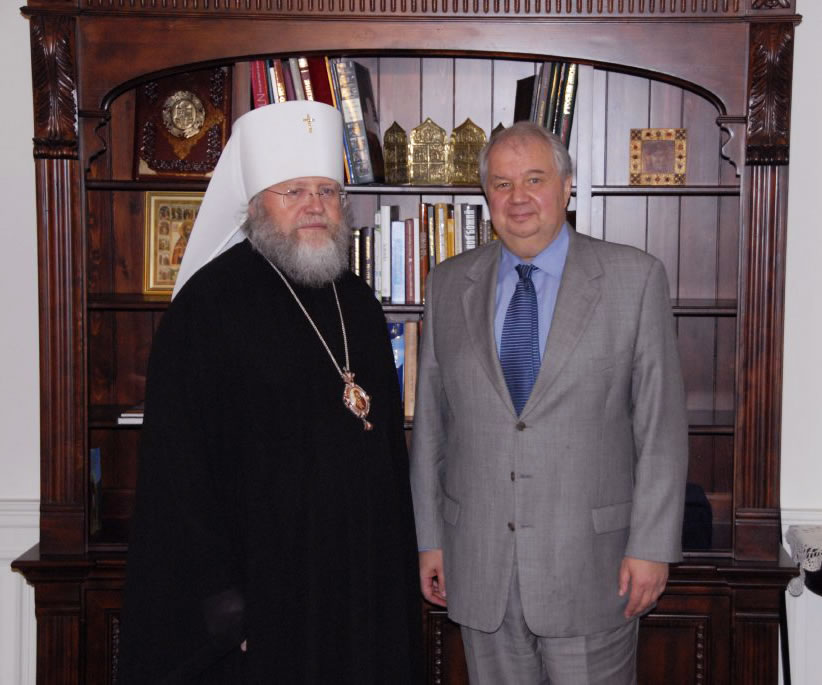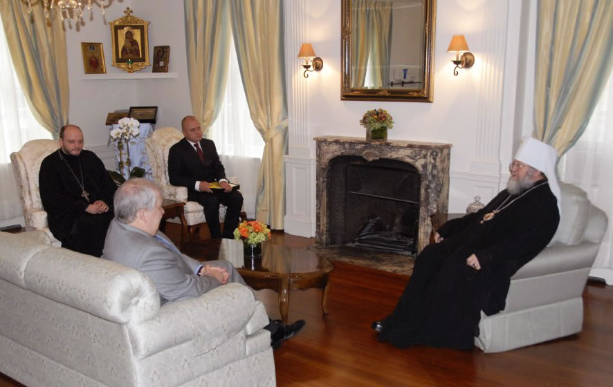 On September 26, 2008, Sergei Kislyak, the new Russian Ambassador to the United States, paid a visit to His Eminence Metropolitan Hilarion, the First Hierarch of the Russian Orthodox Church Outside of Russia, at his residence at the Synodal Building in New York City. We offer our readers photographs of the event, which was held in a warm and friendly atmosphere.