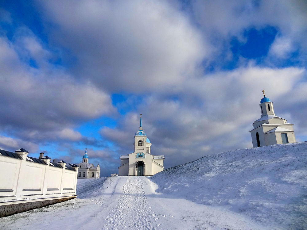Снег скрипел под ногами. Тонкие подошвы моих сапог ощущались как бумажные. Куртка, словно невесомая кофта, едва спасала. Нос и щеки заледенели. Мы шли в горку, приближаясь к воротам монастыря. И вот мы вошли. Я сделала еще шаг и остановилась. Меня вдруг пронзило, и всё внутри меня совпало: эта белизна, чистота, купола, словно их окунули в синеву неба. Это торжество, и молчание, и нетленность… Я подумала, что это могло бы быть входом в Царство Небесное, и тут же поняла, что Царство еще прекраснее. И вспомнились мне слова: «Огонь и пурпур, золото и лазурь пророчески говорят о неизреченной красоте Твоих селений, торжественно зовут: пойдем к Отцу!» Это из Акафиста благодарственного, который называется «Слава Богу за всё». От счастья я заплакала. Но на морозе особо не наплачешься. Всё сразу замерзло. Я посмотрела на подругу: