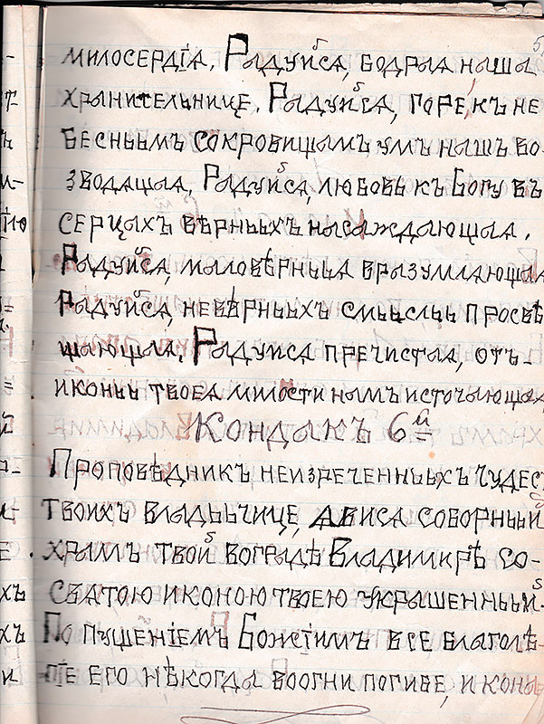 Переписан им от руки и Акафист Божией Матери Владимирской – печатными буквицами, очень красивыми.