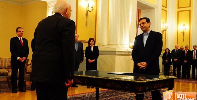 Лидер Коалиции радикальных левых сил Греции (СИРИЗА) Алексис Ципрас отказался давать традиционную на Библии во время принятия присяги в качестве премьер-министра, однако попросил у Предстоятеля Элладской Церкви благословения и молитв.
