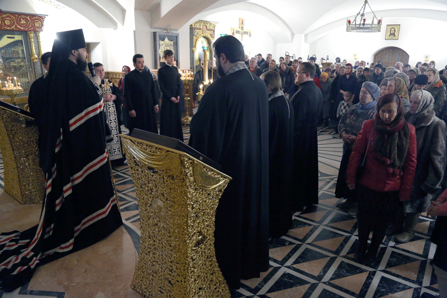 В вечер прощёного воскресенья архиепископ Горловский и Славянский Митрофан совершил вечерню с чином прощения в нижнем храме в честь Новомучеников и исповедников Русской Церкви Богоявленского кафедрального собора. Ему сослужили клирики соборного храма.