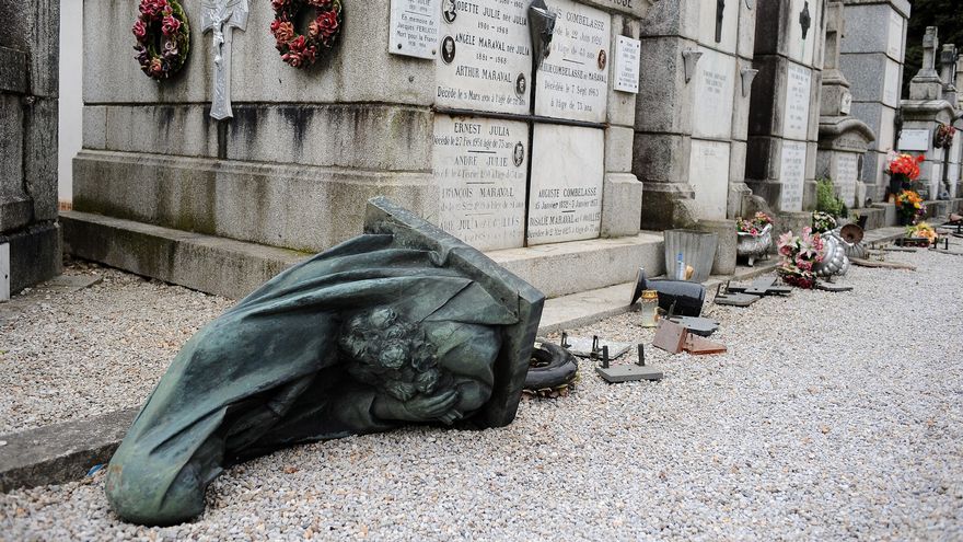 Разрушено распятие, перевернута статуя Девы Марии, разбиты надгробия.