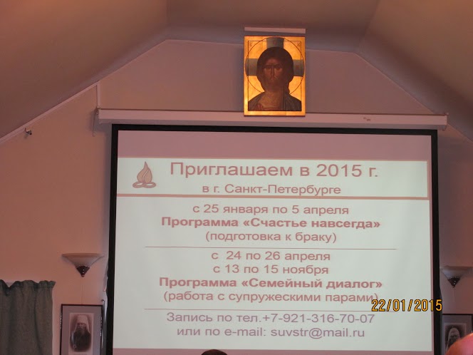 но в ней есть некоторые неточности, которые могут оттолкнуть от нас людей (и уже отталкивали). И проблема не в упоминании римо-католиков, а в том, что там написано, что эта программа предназначена для семей в кризисе. Мы пытаемся уйти от этого стереотипа. Наша программа направлена на укрепление семьи путём обучения правильному выражению чувств и диалогу. ЛЮБОЙ семье полезно побывать на нашей программе - не только кризисной. Мы уже несколько раз слышали от людей, которых приглашали: "Да что Вы - нам ещё рано, у нас всё хорошо. "Супружеские встречи" - дело хорошее, конечно, но мы ещё не дошли до того, чтобы нам нужно было на них к Вам ехать". Люди думают, что у них должно всё стать совсем плохо, чтобы они к нам обратились. Мы не отказываемся брать пары в кризисе, стараемся им помочь, и часто это получается. Но эта программа НЕ ТОЛЬКО ДЛЯ НИХ, программа открыта ДЛЯ ВСЕХ, кто находится в законном браке.
