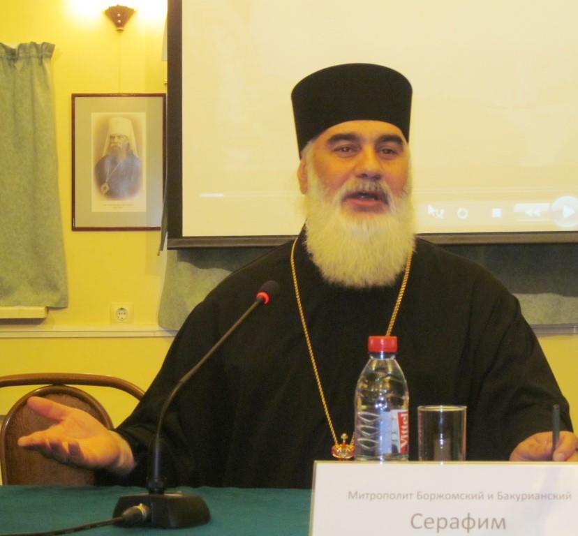 Затем с приветственным словом к собравшимся обратился специально прибывший на эту встречу из Грузии митрополит Боржомский и Бакурианский Серафим, известный своими упорными трудами по распространению в Грузии почитания преподобного Серафима Саровского и усилиями по восстановлению мирных и братских отношений между народами Грузии и России. Владыка Серафим тепло поблагодарил за возможность участия в вечере и отметил давние и прочные связи Свято-Тихоновского университета с православными кругами Грузии.