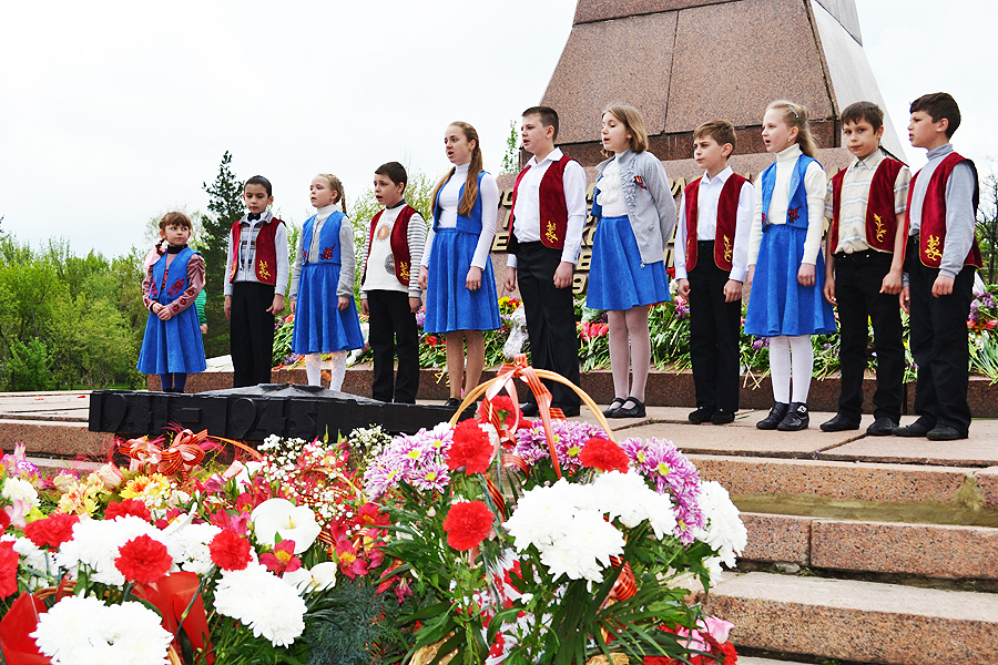 Концерт, который прошёл после литии по усопшим воинам и церемонии возложения цветов к вечному огню, был подготовлен музыкальными коллективами города. Класс духовного пения исполнил для ветеранов и всех горожан песни «Мой дедушка герой» и «У гранитной стены», посвящённые памяти Великой Победы, сообщает сайт Горловской и Славянской епархии.
