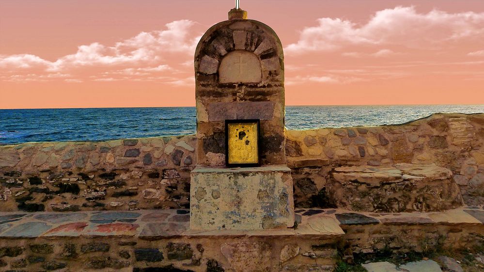 Several monks gathered in the hall. The guest master came to us to strike up a conversation. I answered every question honestly and could not hide my great love of Iveron. Suddenly he threw his arms around me, pulled me to his chest, and leaned his head on me. The next day we had no time to go to trapeza. We attended the morning services and took our “Queen” icon to the place where St. Gabriel walked on the sea as on dry ground to meet the Portaitissa icon. We put the “Queen” on the exact spot where a spring came out, and then we took the icon to the place where Portaitissa is placed once a year on the seashore, and finally returned to Iveron with the icon. We gave a copy of the Tsilkani Theotokos icon to Iveron, which is believed to have been painted by St. Luke the Evangelist. It was an amazing time that we spent at Iveron Monastery.