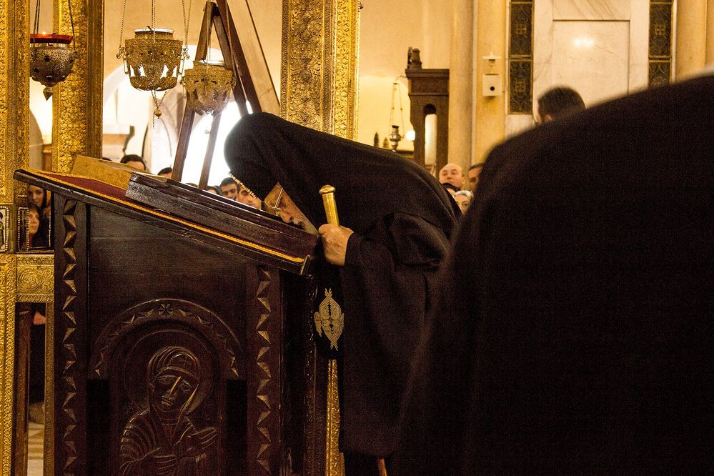 Giorgi: It was also unforgettable for me as well, visiting the Great Lavra of St. Athanasius. There are very strict rules. After the service the icon was placed on St. Athanasius’ tomb, which is in the main part of the Lavra. Zurab and I, as the guards of an icon, were standing beside it. When the service was over, every monk of the Lavra stood in line. First they knelt in front of the “Queen,” kissed the icon and then the tomb of the great St. Athanasius. We also visited the place where Panagia had appeared to St. Athanasius. You might remember that Holy Mary told him to strike his staff on the rock where a spring then came out. It is very difficult to describe everything. It’s a long story, to which a whole book could be dedicated.
