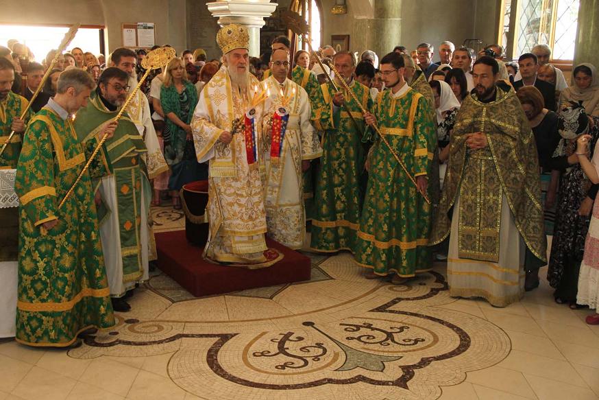 Јутро у Београду је било изузетно топло; није то спречило верни народ да дођу у ране јутарње сате да дочекају Патријарха српског Иринеја и да се окупи на светом литургијском сабрању. У 9 часова звона руске цркве Свете Тројице означила су почетак свете Литургије и позив свима широм васељене да прославе преподобне подвижнике, заштитнике породице, верности, љубави - Петра и Февронију Муромске.