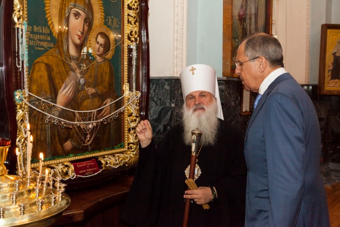 В ответном слове глава российского дипломатического ведомства Сергей Лавров поблагодарил митрополита Викентия за гостеприимство: «Я действительно всегда стараюсь посещать наши храмы, когда бываю заграницей, где есть общины Русской Православной Церкви, наши соотечественники. И очень приятно почувствовать эту атмосферу, которую вы создали вокруг кафедрального собора, увидеть совсем маленьких детей, детей постарше и школьного возраста и взрослых, которые тянутся сюда, как к очагу культуры, очагу духовности.