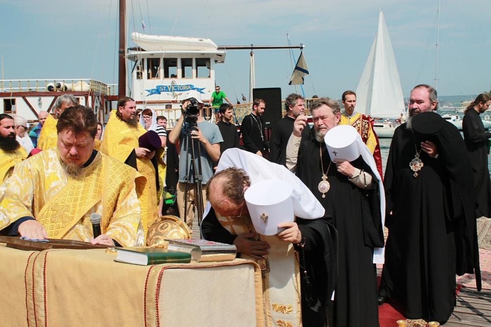 По окончании молебна архипастыри осенили ковчегом с мощами святого князя Владимира стороны света, призывая молитвенное заступление Крестителя Руси на город Севастополь, Крымскую землю и Черное море, после чего поместили святыню на корабль.