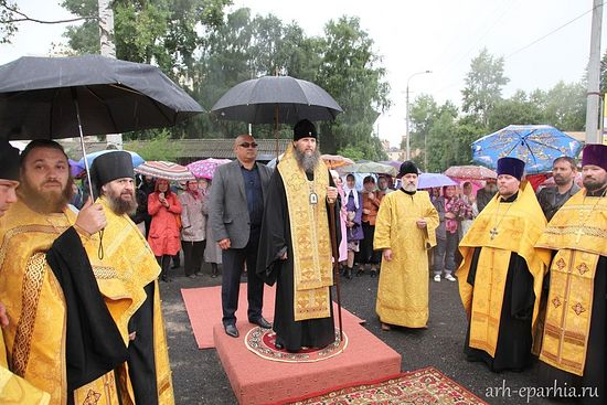 Во время богослужения шел дождь. «Через него плакали люди, кости которых находятся здесь, в городе, и за его пределами, над их могилами нет крестов, мы не знаем, где они похоронены, за что их убили. Они пострадали за свою веру, Отечество, это самое главное. Установленный крест пусть указывает, что здесь построят храм, где будут поминать живших в этом городе, созидавших и украшавших северную землю», — завершил речь глава Архангельской митрополии.