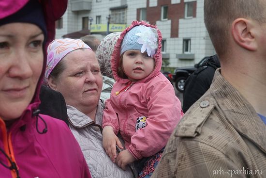 «В этот день и на этом месте 96 лет назад самые чистые существа — дети — увидели на небе Пресвятую Богородицу. Ее явление знаменовало заступничество Царицы Небесной Архангельску в надвигающиеся тяжелые времена. Войска Красной армии, занявшие город вскоре после чудесного события, уничтожали душу народа, его веру, культуру, традицию. Архангельск погрузился в хаос и мрак, стал называться "городом смерти". Расстреливали всех подряд, даже подростков выстраивали в шеренги и убивали. В честь комиссара Кедрова названа улица в нашем городе. Можно назвать и в честь Гитлера, других преступников. Думаю, что наступят времена, и улицы, названные в честь палачей, мы переименуем», — сказал владыка после богослужения.
