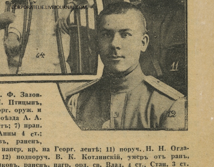 В дневнике боевых действий 226-го Землянского полка говорится: «Приблизившись к противнику шагов на 400, подпоручик Котлинский во главе со своей ротой бросился в атаку. Штыковым ударом сбил немцев с занятой ими позиции, заставив их в беспорядке бежать… Не останавливаясь, 13-я рота продолжала преследовать бегущего противника, штыками выбила его из занятых им окопов 1-го и 2-го участков Сосненских позиций. Вновь заняли последнюю, вернув обратно захваченные противником наше противоштурмовое орудие и пулеметы. В конце этой лихой атаки подпоручик Котлинский был смертельно ранен и передал командование 13-й ротой подпоручику 2-й Осовецкой саперной роты Стрежеминскому, который завершил и окончил столь славно начатое подпоручиком Котлинским дело».