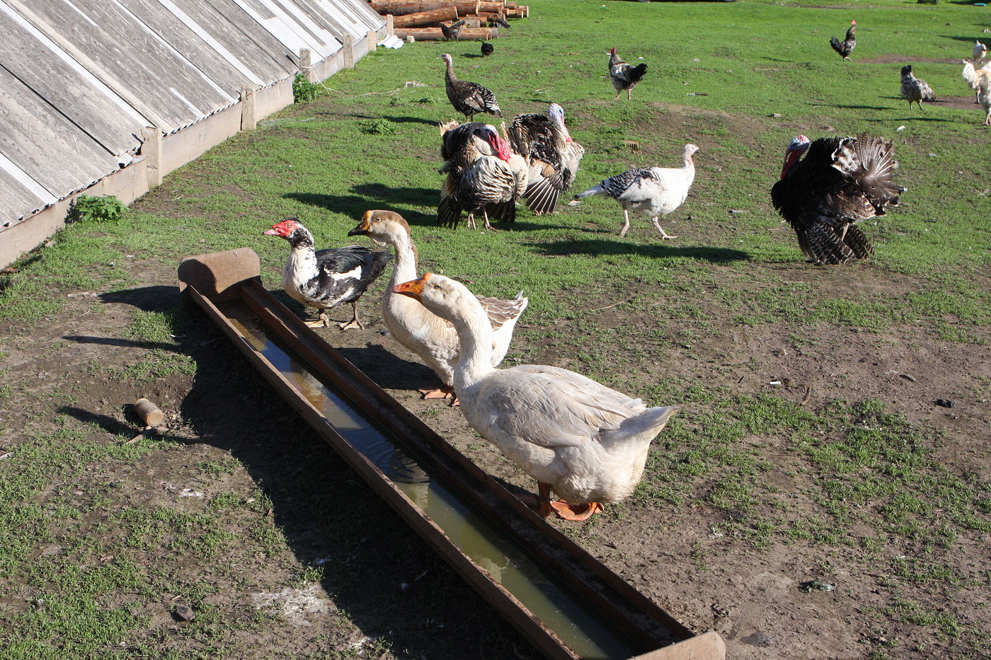 Птицы у нас интересные: индюки, цесарки, сейчас стали заниматься фазанчиками. Есть, конечно, и гуси, утки. Всего штук 300. 100 с чем-то кур. Одних петухов 20.
