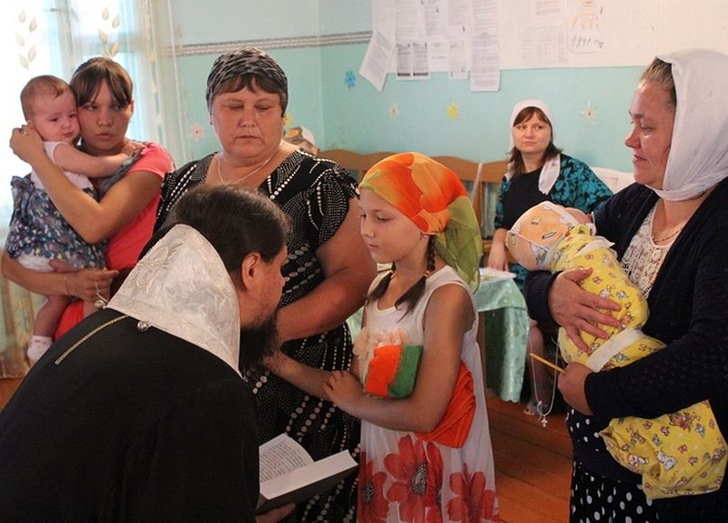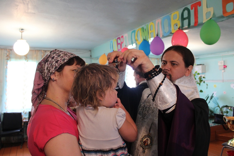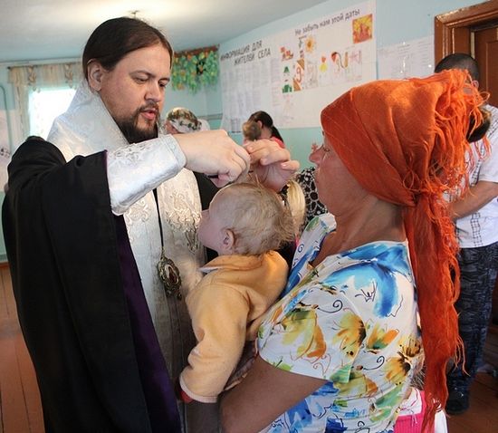 В помещении сельского клуба было совершено Таинство Крещения родившихся недавно младенцев, а также детей дошкольного и младшего школьного возраста, проживающих в селе, сообщает пресс-служба епрахии.