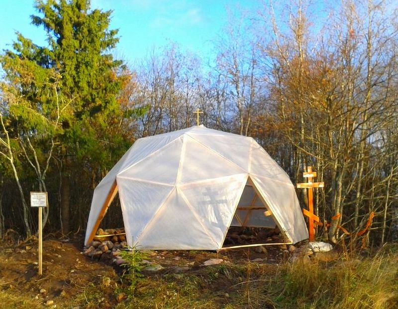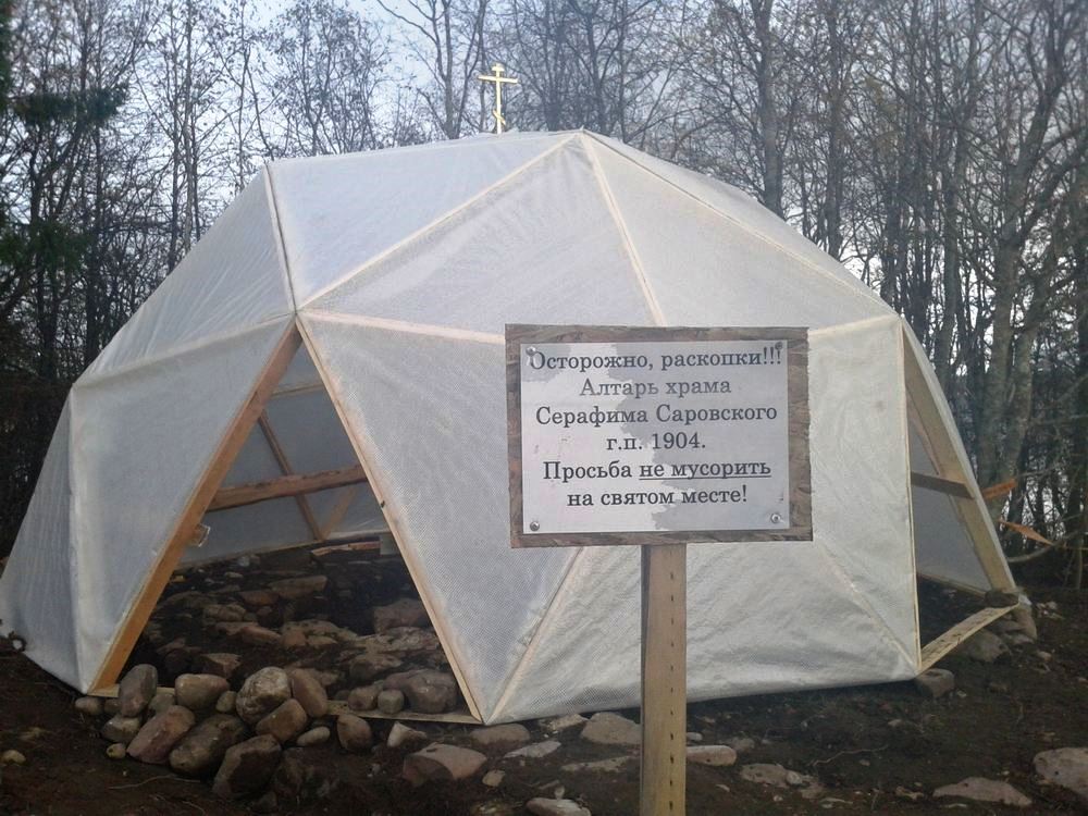 Под этим навесом будут не только проводиться в любую погоду дальнейшие раскопки, но и совершаться молебны. «Получился своеобразный «палаточный» храм», – говорит отец Константин.