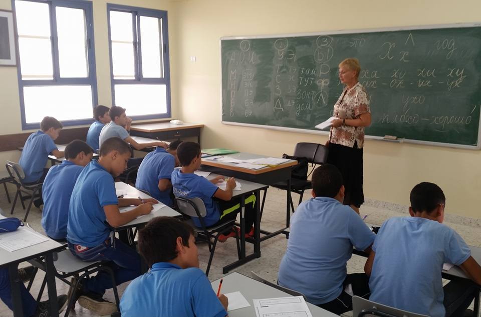 Образовательная школа в Вифлееме, построенная Российским государством и при участии ИППО, торжественно открытая в прошлом году Сергеем Степашиным. Идет урок русского языка с русским учителем.