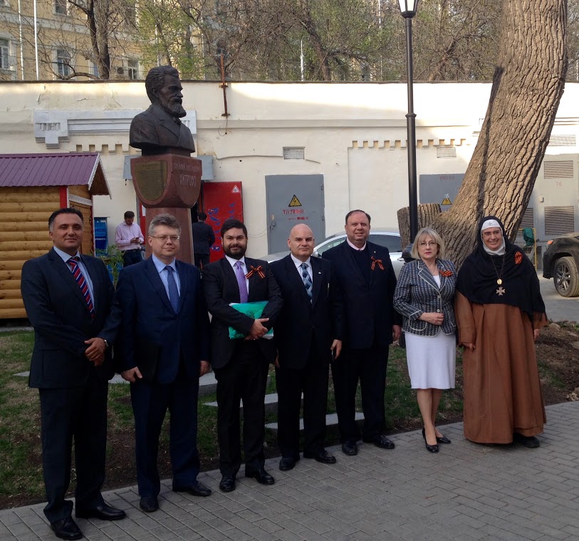 Апрель 2015 г. Москва.Представители ливанских и иракских христианских общественных делегаций возле памятника Василия Хитрово в Центре ИППО