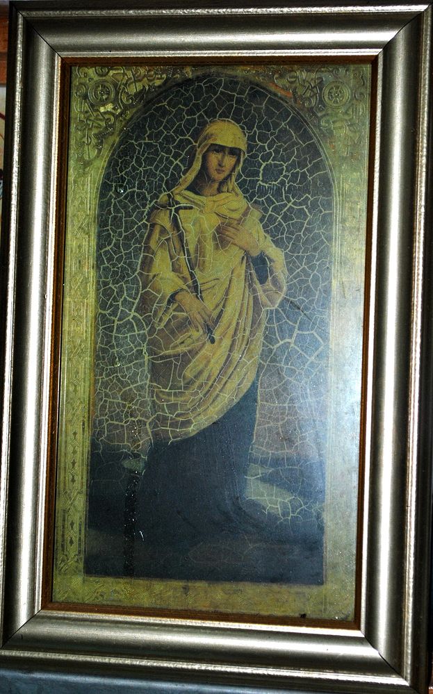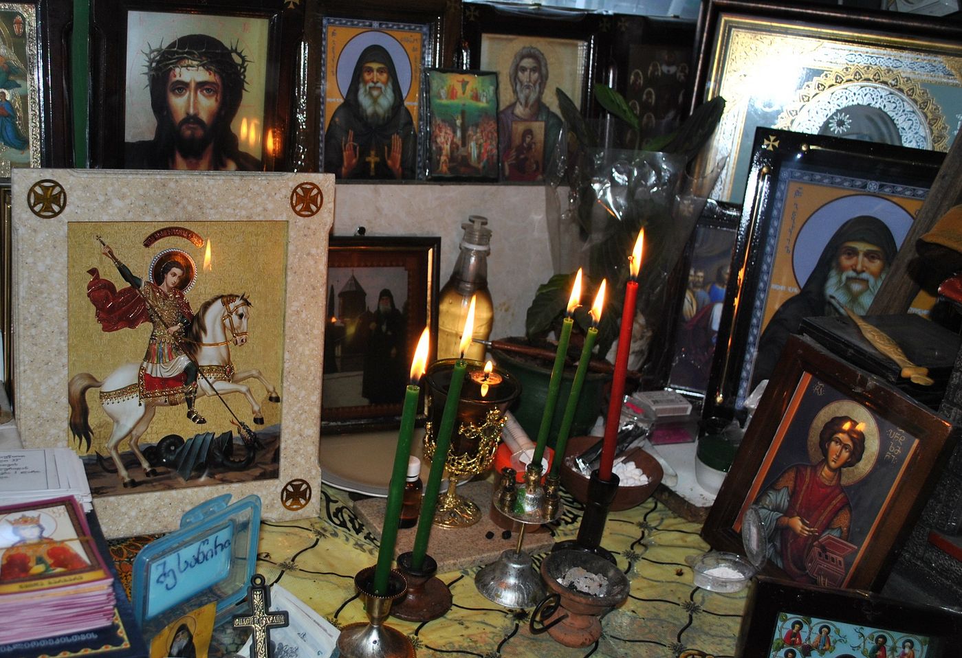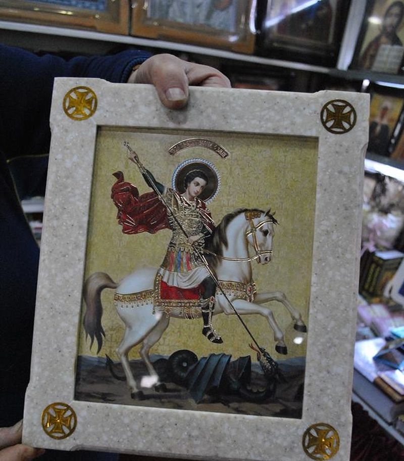Недавно замироточила стоящая рядом икона святого Георгия Победоносца и находящаяся на полке выше икона св. Нины.