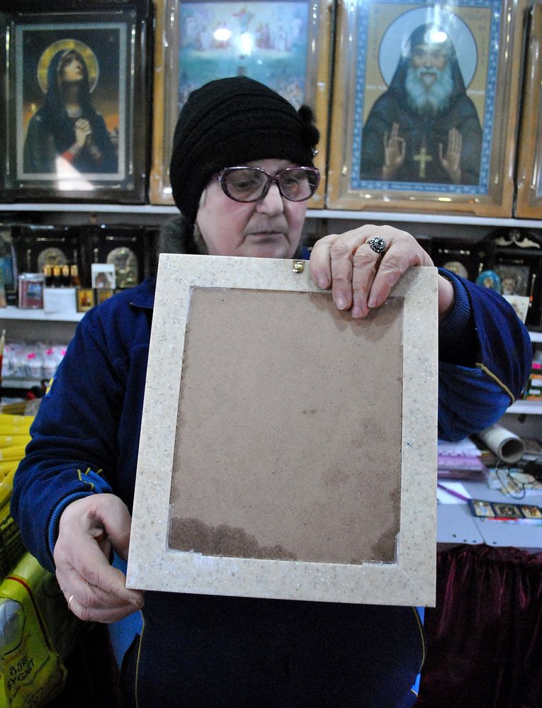 Владелица магазина Наргиза помазывает всех приходящих верующих. По её словам, чем больше людей она помажет, тем обильнее истекает святое миро.