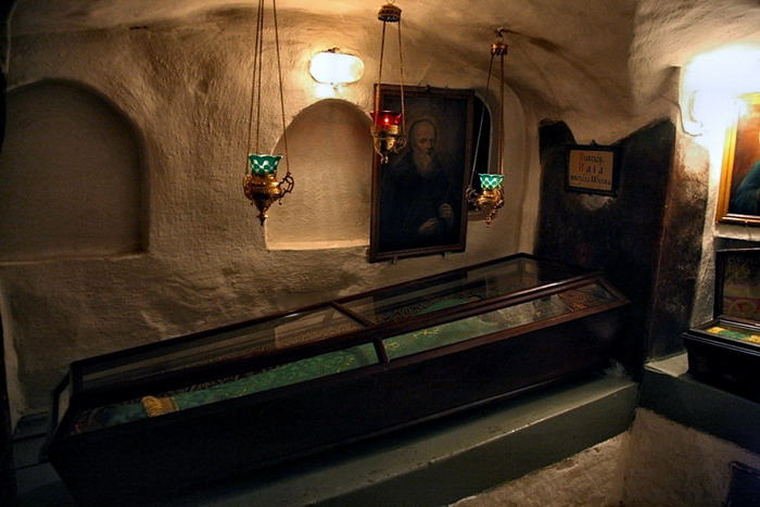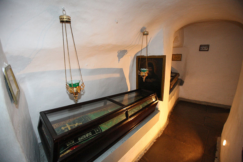 Или другой случай. Произошел он где-то за год до последнего открытия монастыря. Утром одна из наших сотрудниц обходила Пещеры и заметила, что облачение на одном святом лежит неправильно. Открыла гробницу, чтобы поправить одеяние, и увидела, что у святого не хватает целой кисти руки. Вызвали милицию, перекрыли входы и выходы, осмотрели уже третью по счету группу туристов, проходивших в тот день по Пещерам, – ничего нет. Стали открывать другие гробницы, и обнаружилось, что порядка 20 мощей осквернено. У кого пальца не хватает, а у кого целой руки. Всем было ясно, что при желании грабитель давно мог спокойно уйти, но все же решили досконально проверить все Пещеры. И что бы вы думали? Обнаружили его в одном из самых дальних концов Пещер сидящим в углу с сумкой, доверху набитой частями мощей.