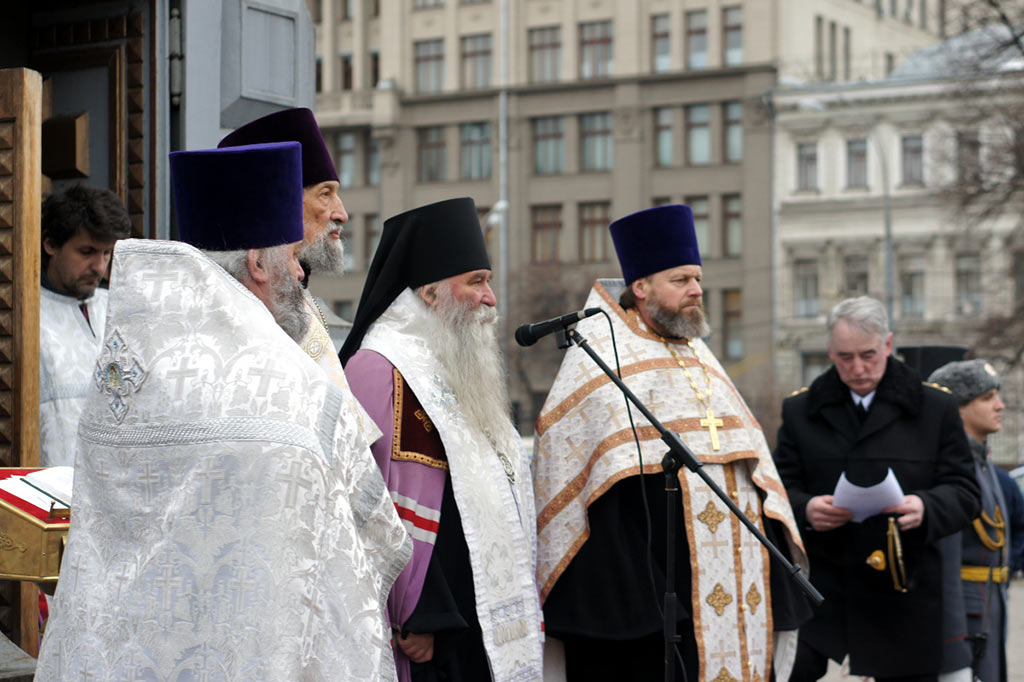 Панихиду по погибшим возглавил епископ Дмитровский Феофилакт. Ему сослужили протоиерей Александр Салтыков, настоятель часовни Знамения иконы Божией Матери, протоиерей Александр Добродеев, заместитель заведующего сектором МВД Синодального отдела по взаимодействию с Вооруженными силами и правоохранительными органами и другие священнослужители г. Москвы.