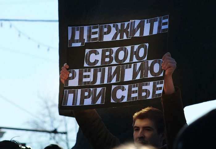 Итак, более тысячи человек в тот день вышли на главную площадь «столицы Сибири» с требованиями убрать из законодательства словосочетание «религиозные чувства верующих» (внести изменения в ст. 148 УК). Мишень, в общем-то, весьма удобная. На тот момент данное словосочетание стало уже своеобразным жупелом для некоторых субкультур: им можно пугать детей или, наоборот, повсеместно его высмеивать, и поэтому в той грустной истории с «Тангейзером» у защитников провокационной постановки все логично вернулось опять к этим самым «особым чувствам верующих». Это действительно удобно, поскольку против данного определения в законе выступают многие: от тех, кто считает эту формулировку нежизнеспособной, и до тех, кто считает ее противоречащей конституции РФ. И среди критиков Церкви сегодня не прошелся по этому выражению только ленивый. Между тем стоит рассмотреть всерьез, что же это за такие «религиозные чувства верующих», и против чего на самом деле выступала либеральная общественность на том митинге 2015 года.