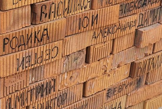 Благотворителей предлагают увековечить: в стену закладывают кирпичи с именами жертвователей.