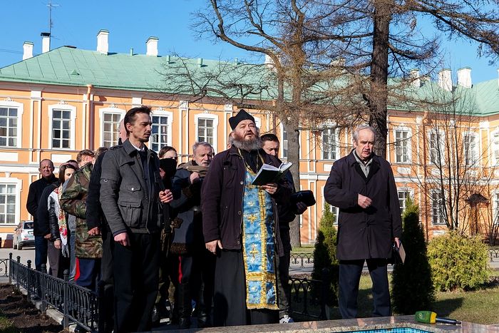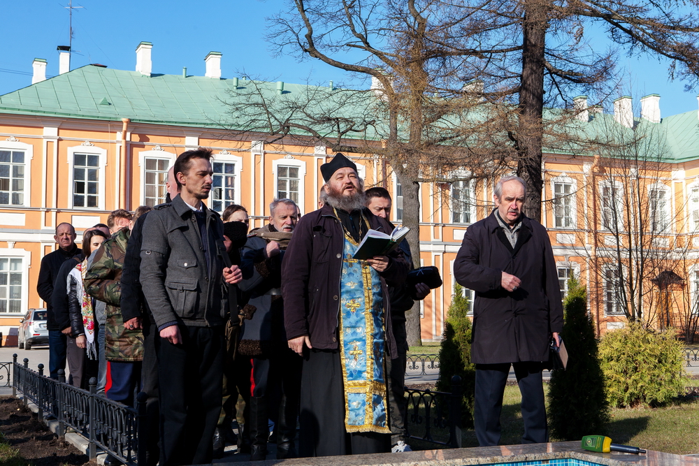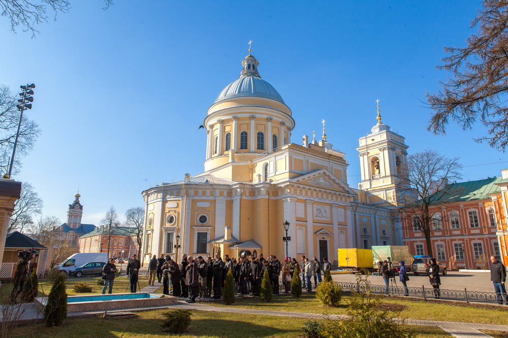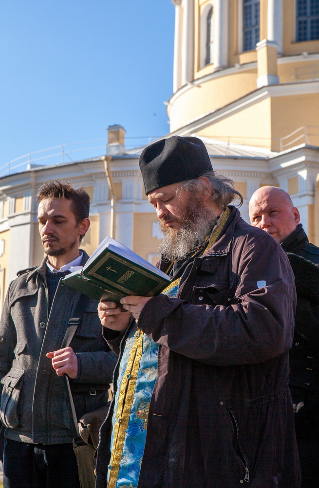 Перед отправлением гуманитарной колонны утром в Александро-Невской лавре прошли проводы представителей епархии, сопровождающих груз.