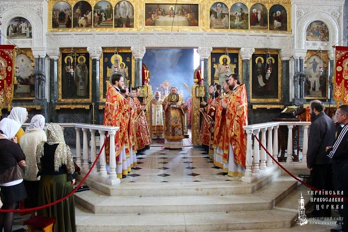 Его Блаженству сослужили наместник Лавры митрополит Вышгородский и Чернобыльский Павел, управляющий делами Украинской Православной Церкви митрополит Бориспольский и Броварской Антоний, архиепископ Макаровский Иларий, епископ Ирпенский Климент, духовенство монастыря.